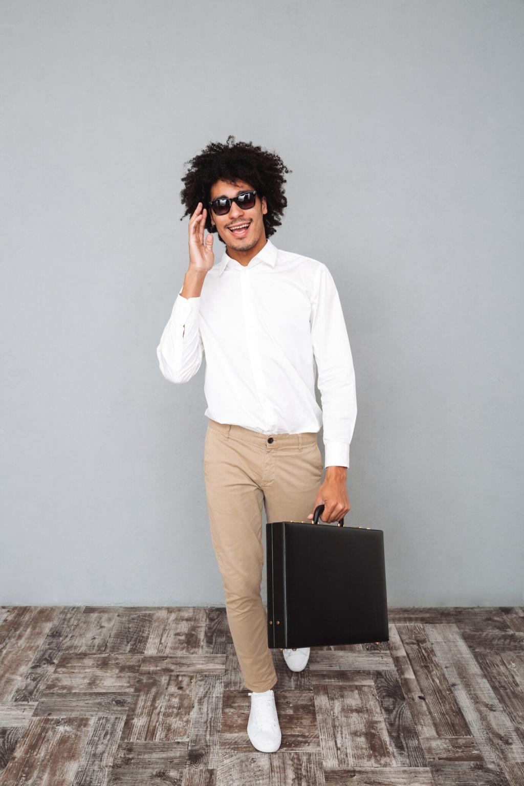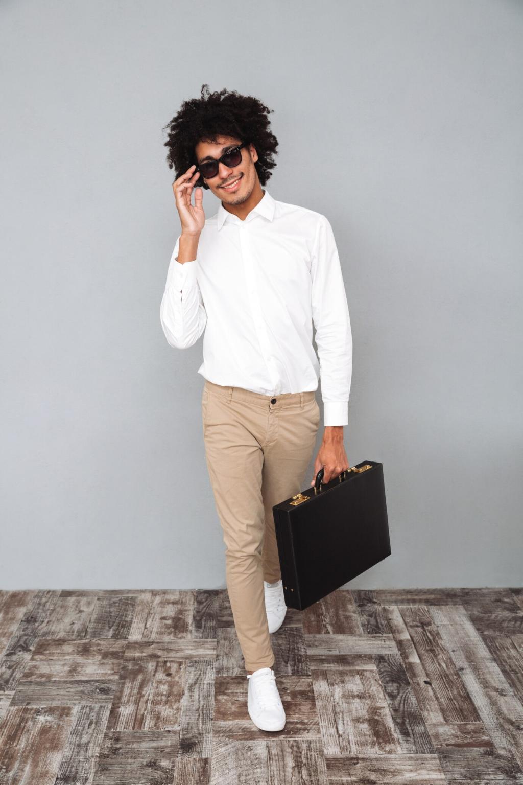 Ein hellblauer Blazer über einer fein gestreiften Bluse sorgt für Frische, während eine strukturierte Chino den formellen Rahmen wahrt. Setzen Sie dezente Gold-Details, und fragen Sie Ihr Team: Welche Pastellfarbe wirkt bei Präsentationen am überzeugendsten?